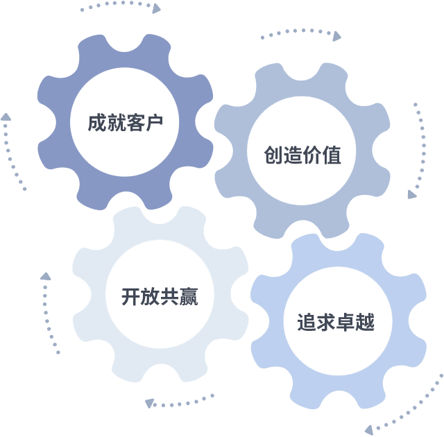 成就客户是一切决策的出发点,创造价值是衡量所有工作的标准,追求卓越是人生就是搏做事做人的态度,开放共赢是人生就是搏的格局也是最终的结果。价值观的齿轮环环相扣,推动着组织里的每个人不断向前。